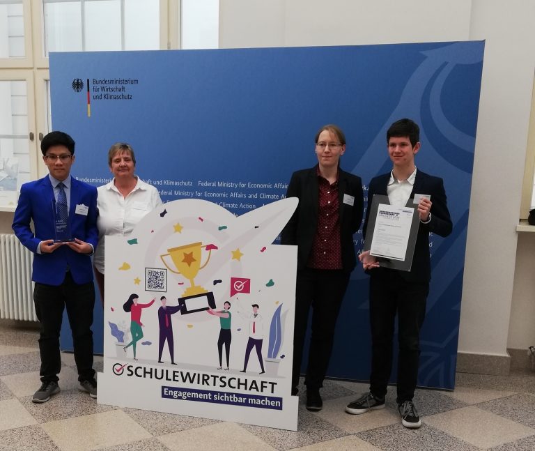 Für den SCHULEWIRTSCHAFT-Preis gab es insgesamt 80 Bewerbungen aus allen 16 Bundesländern, sodass wir uns sehr gefreut haben, als Preisträger ins Bundesministerium für Wirtschaft und Klimaschutz in Berlin eingeladen zu werden.
