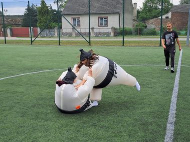 Am späteren Vormittag kamen dann die Sportskanonen an die Reihe und der Sumoringer-Kampf sowie der Limbowettbewerb, den der polnische Sportlehrer Mariusz veranstaltete, machten allen viel Spaß. Am Nachmittag fanden dann die ersten vier Runden unseres Schachturniers statt. Abends besuchten wir den Chlebowoer Angelteich, wo geangelt und selbstgeangelter frischer Fisch gegessen wurde.