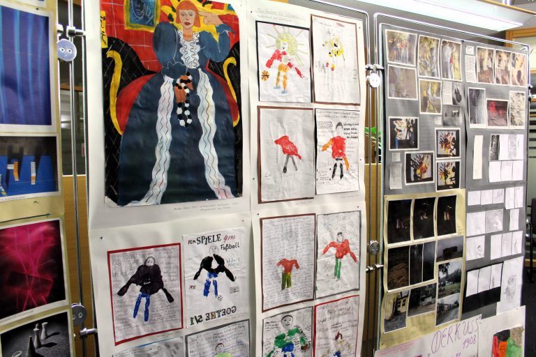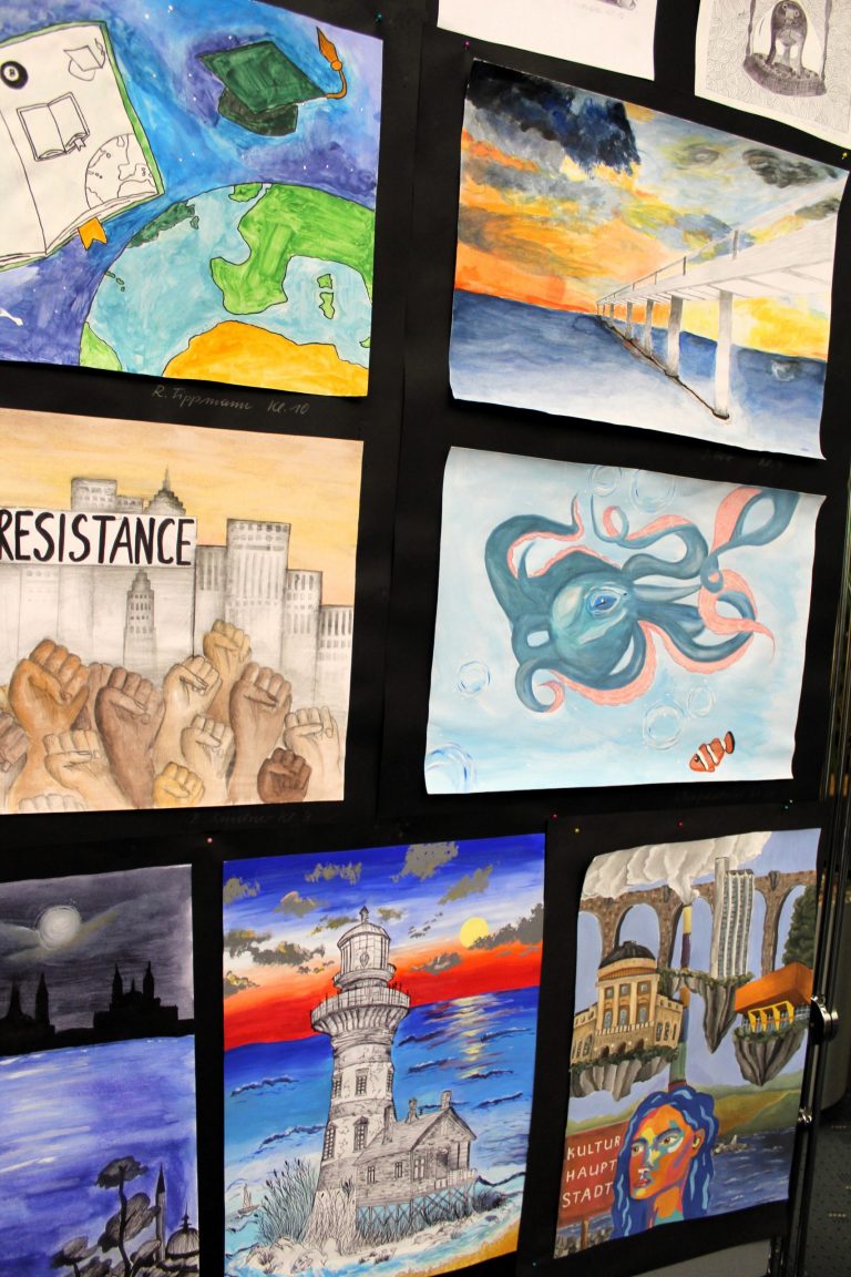 An vielen Stellen im Schulgebäude gestalten wir durch die Kunst der Schülerinnen und Schüler die Wände. So werden spannende, fantastische und selbst erschaffene Werke gezeigt und gewürdigt.