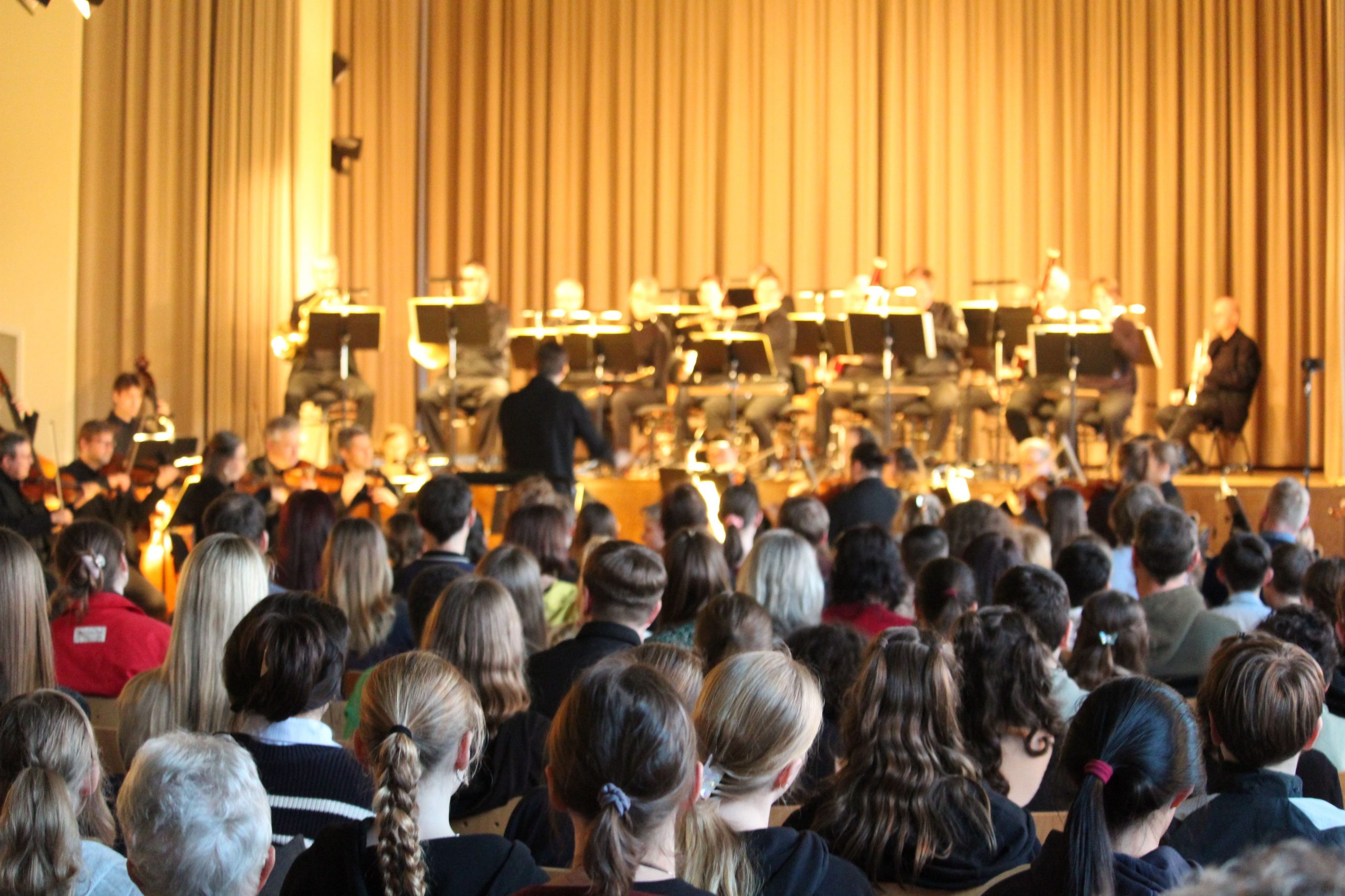 Ein Besuch einer Philharmonie bei so vielen Klassen und extra für uns als Schule ist definitiv nichts Alltägliches. Er wäre nicht möglich gewesen ohne die Organisation durch die Theaterpädagogin Frau Dr. Vieth. Nicht zu vergessen sind hier auch unsere Musiklehrerinnen, Frau Dähne und Frau Meier, die vielfältige Aufgaben übernahmen: Elternbriefe formulieren, Eintrittsgeld einsammeln, Zeit- und Raumplanung mit der Schulleitung abstimmen und die Schülerinnen und Schüler beaufsichtigen. Auch ganz profane Aufgaben kommen da plötzlich auf Musiklehrkräfte zu: Wenn 40 Instrumentalisten zu Gast sind, brauchen auch 40 Erwachsene Kaffee, Würstchen und selbstgemachten Salat als Stärkung in der Mittagspause.