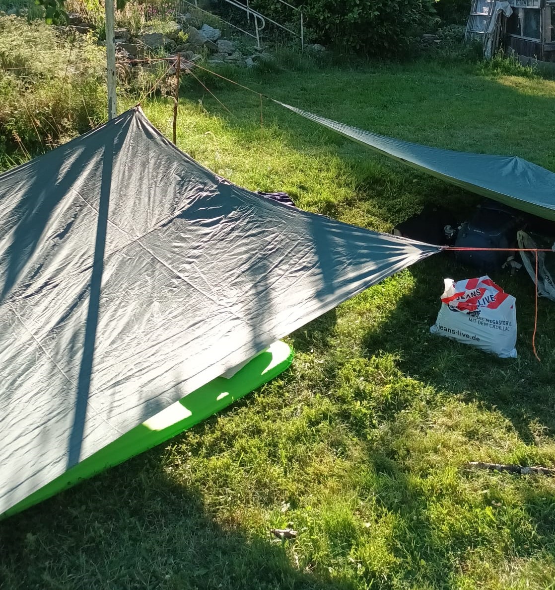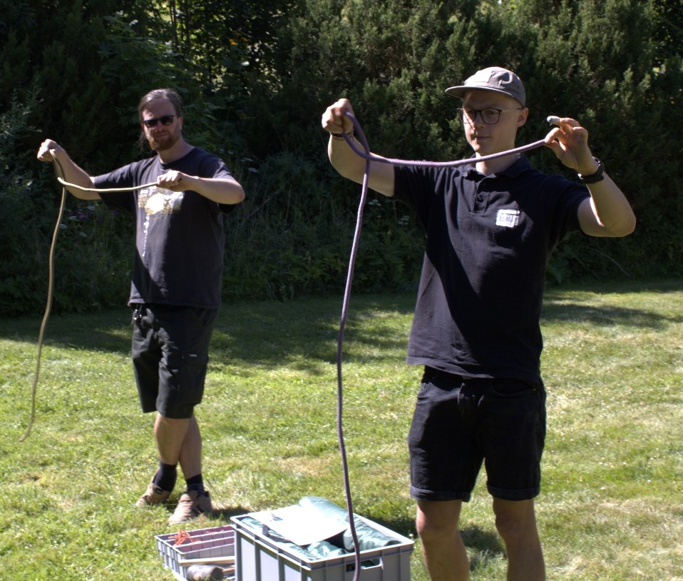 Nach dieser Pause ging es daran, unsere Schlafplätze aufzubauen und da wurde uns erst einmal gezeigt, welche Knoten man für ein sogenanntes Biwak braucht. Jetzt wissen bestimmt manche nicht, was ein Biwak ist. Es ist eine Art Zelt: Man braucht eine Plane, welche man mit Hilfe von Stöcken stützt und es kann auch nicht geschlossen werden, sondern es ist rund um die Uhr offen.