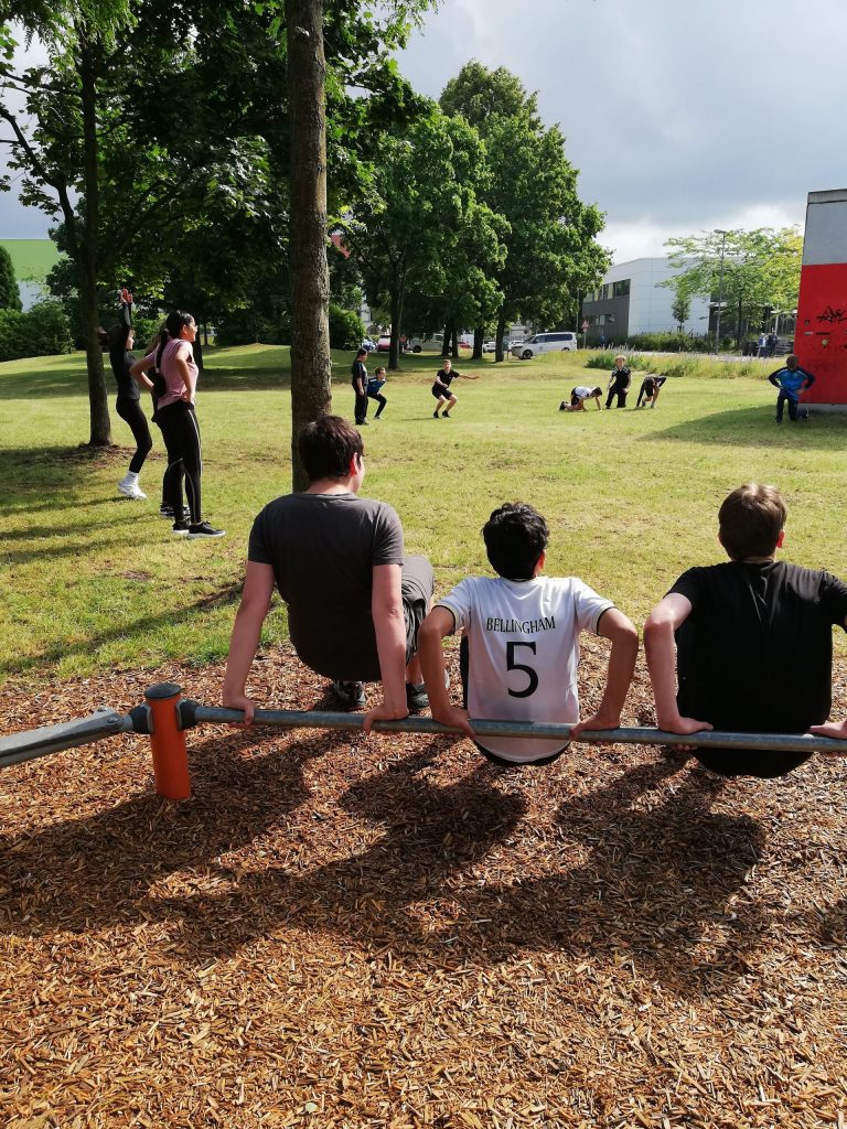 Für Klassenstufe 7 stand mit der ersten Sport-Sommerwoche eine Premiere an. Herr Nötzold hatte als Sportlehrer drei externe Partner und einen Sportkollegen gefunden, welche gemeinsam an vier Tagen zeigen sollten, was alles möglich ist im Bereich Sport in Chemnitz.
