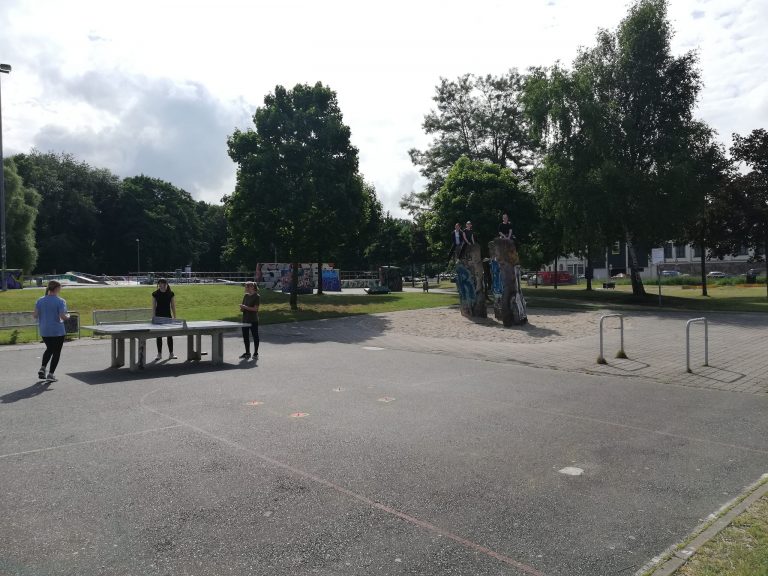 Dass man in Chemnitz draußen super Sportmöglichkeiten findet, bewies Fachlehrer Herr Nentwich am Schlossteich und im Konkordiapark. Mit Jogging, Kraftkreis und diversen Spielen konnte jeder sehen, wie man sich ganz in der Nähe des Stadtzentrums fit halten kann. Besonders gefiel den Klassen, dass es hier auch Wahlangebote gab.