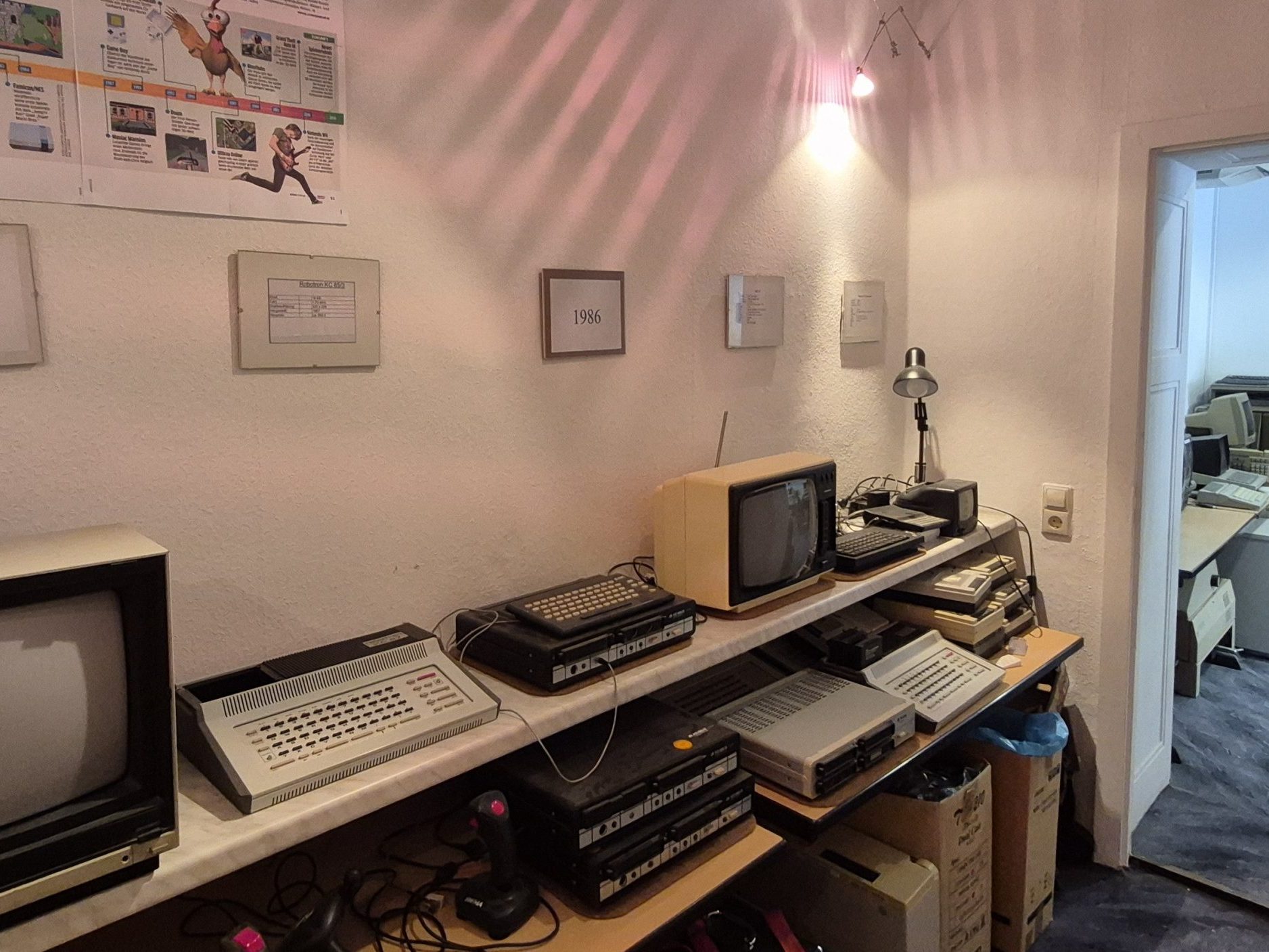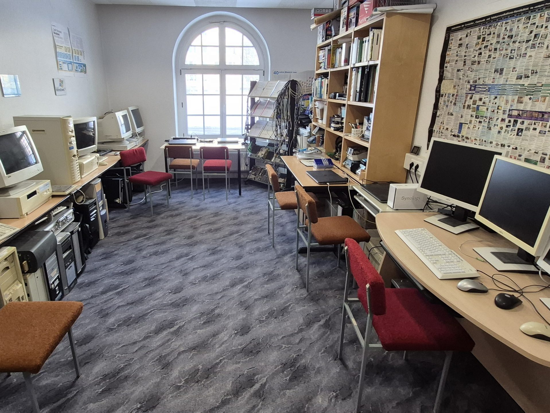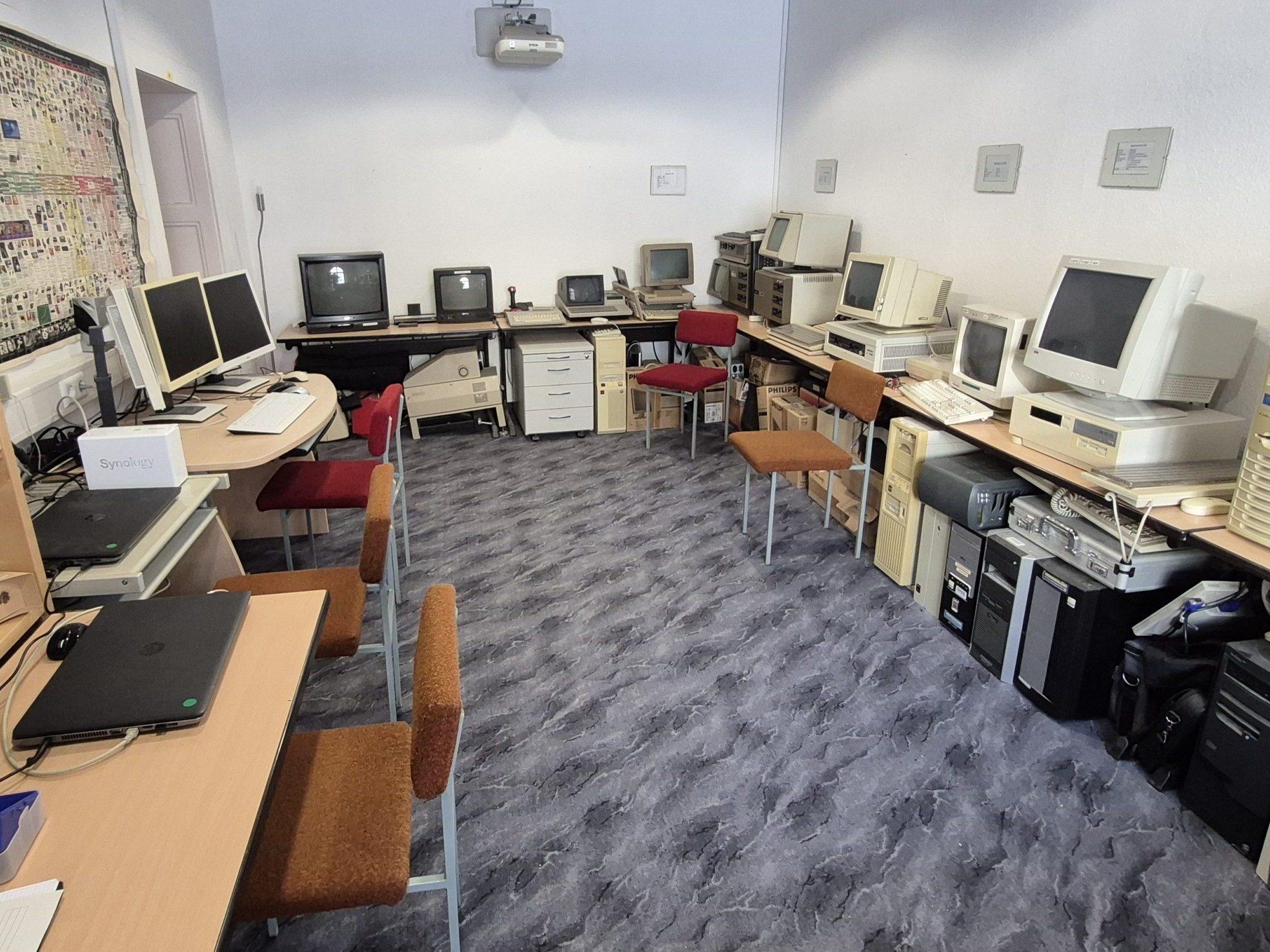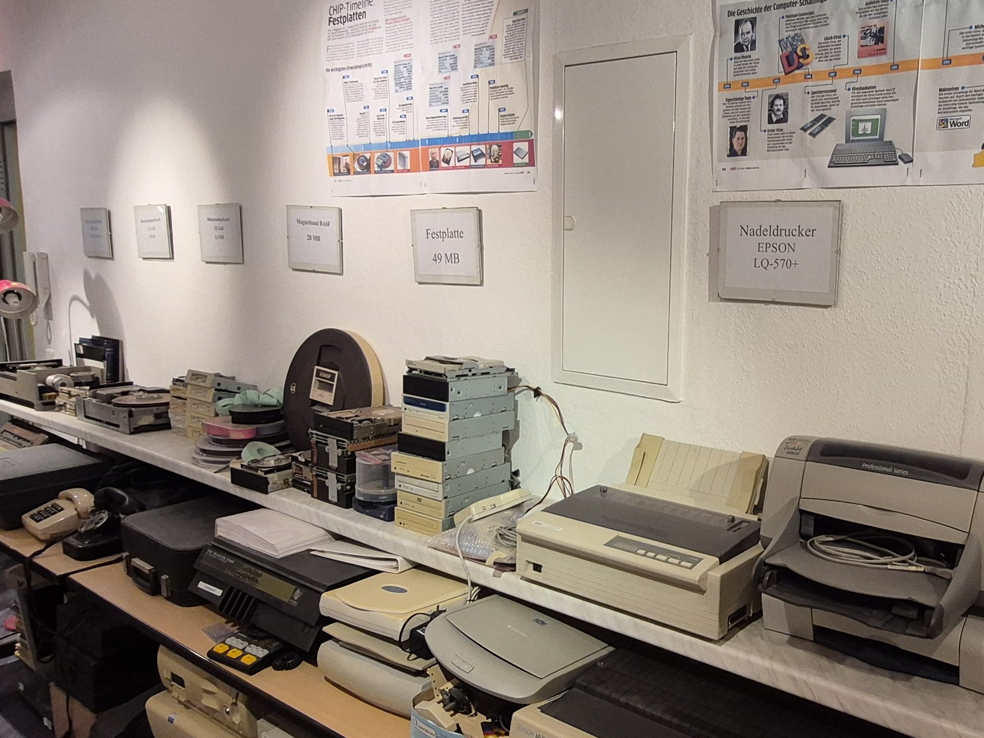 Blick in das Computermuseum, das ab dem Schuljahr 2003/2004 entstand. Die Renovierung wurde von unserem ehemaligen Hausmeister Herrn Reinhardt durchgeführt. Die Exponate sind Spenden von Eltern, Lehrern und Technik von geschlossenen Schulen. Die oben verlinkte Datenbank hat unser ehemaligen Schüler Stephan Tischer im Rahmen einer Projektarbeit erstellt.