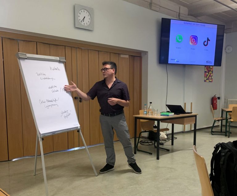 Unterstützt werden sie dabei von Sebastian Steger, Medienpädagoge und Projektleiter der Chemnitzer Filmwerkstatt. Die Jugendlichen reflektieren mit seinen Impulsen ihr eigenes Smartphone-Nutzungsverhalten und erhalten fachmännischen Input zu den Hintergründen von v.a. Fake News, Hoaxes, Influencing, KI und Cybermobbing.